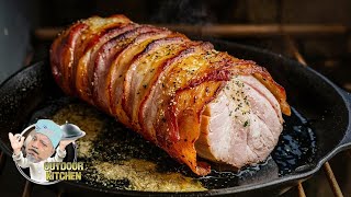 Saftiges Schweinefilet Im Speckmantel Mit Apfeln Aus Dem Ofen